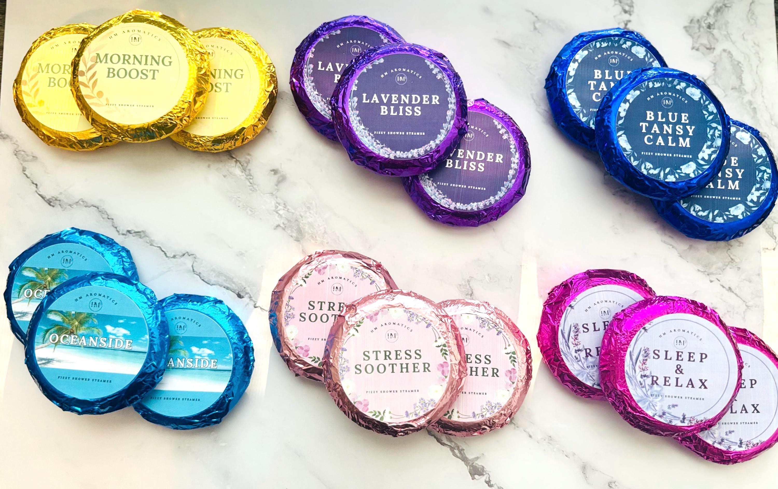 Essential Oil Shower Bombs for Stress, Sinus, Sleep, Energy